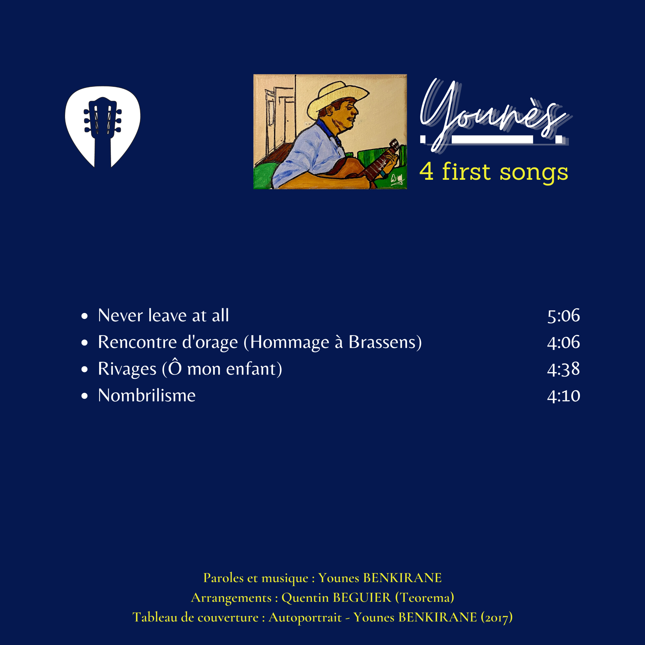 C'est dans ce contexte et cet environnement favorable que l'auteur grandit à la musique et naît à la guitare. Imitant en cela Dylan, Neil Young et tant d'autres, Younes Benkirane se met ensuite à l'harmonica, idéal pour s'auto-accompagner au chant et à la guitare. Il s'initiera également au oud (luth arabe), puis au piano.
